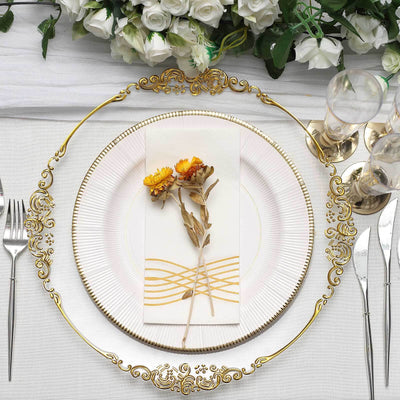 About Quantity: 6 Charger Plates Material: Hard Plastic Color: White | Gol...